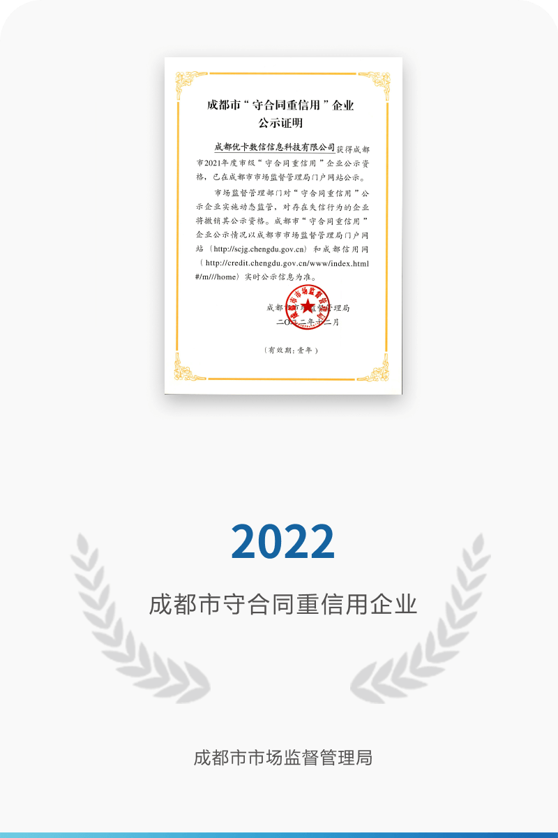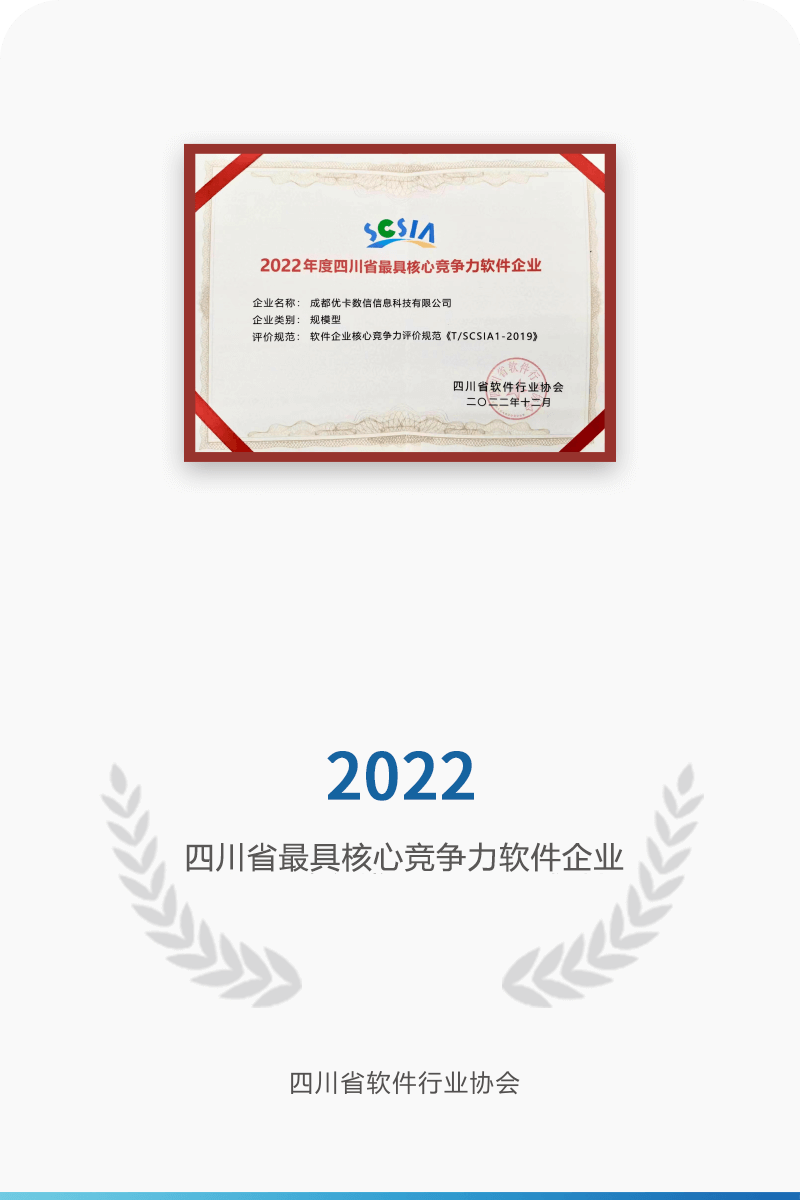 高新技术企业 | 四川省优秀软件产品 | 四川省最具核心竞争力软件企业 | 成都市守合同重信用企业 | 四川省创客中国优胜奖